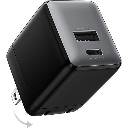 USB C Fast Charging Charger, 30W Dual-Port GaN Nano Charger with Foldable Plug for iPhone 16/15 Series, iPad, Galaxy S24 Ultra and More Series, (Black, 1 Pack)