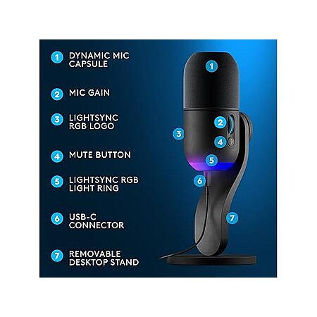 Dual RGB zones: Use LIGHTSYNC to control two separate RGB light zones on the Logitech microphone and sync with other Logitech G gaming gear in G HUB for a fully immersive experience. Works as a microphone for podcast too.