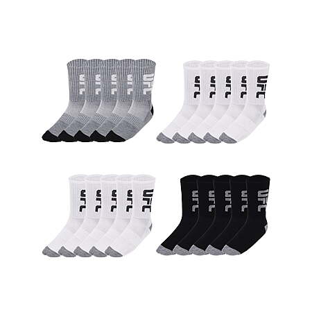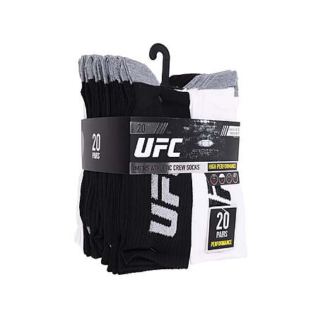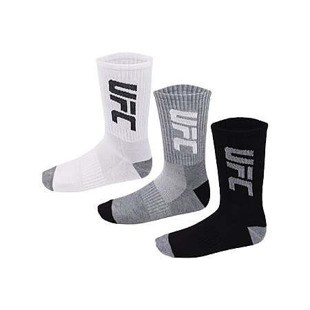 UFC 20 Pair Men's Lightweight Crew Socks with Leg Logo, Blk/Wht/Grey - $9.70