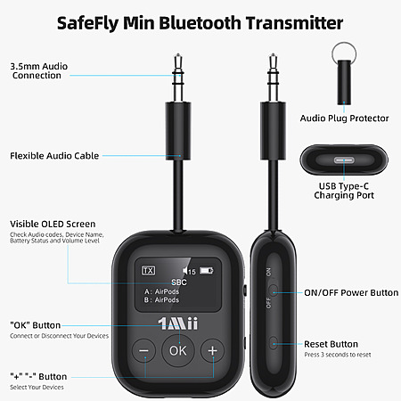 1Mii SafeFly Min Bluetooth 5.3 Transmitter for Airplane on sale for $19.98 - 50% off when you apply promo code