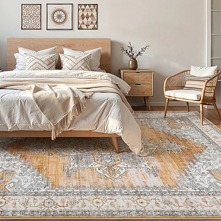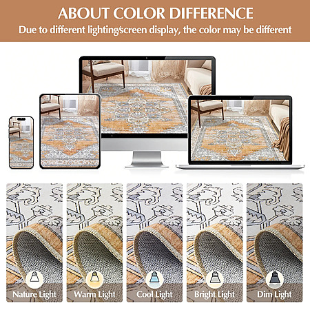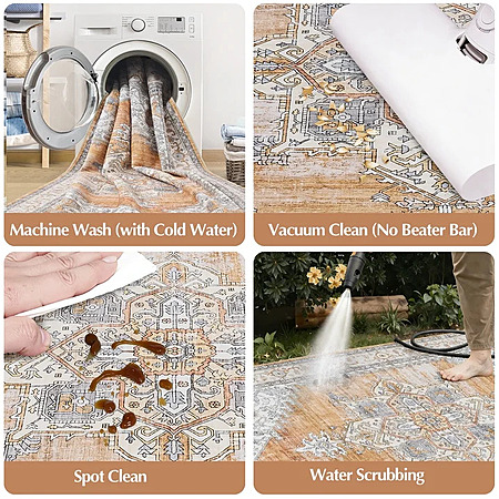 Toyoso 5x7 Machine Washable Area Rug, Soft Polyester Vintage Medallion Distressed Rug, Non-Slip Oriental Farmhouse Carpet for Living Room, Burnt Orange $39.99