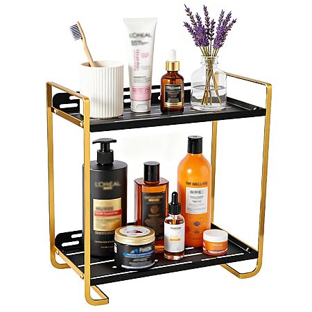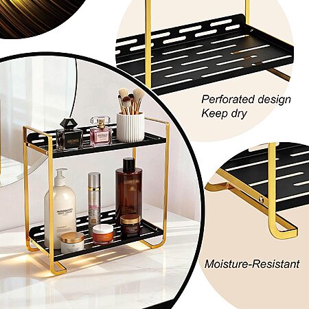 2-Tier 10.8" x 11" CATOOMUU Countertop Organizer (Gold & Black) on sale for