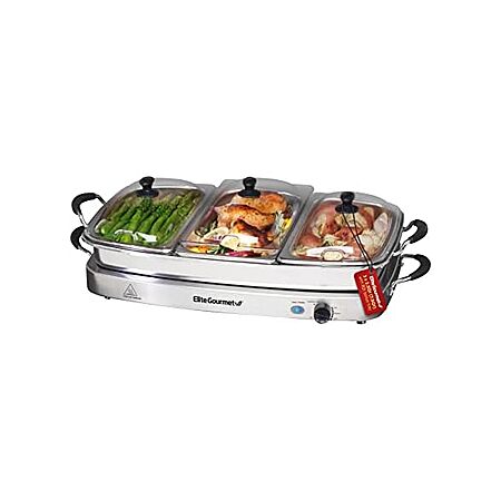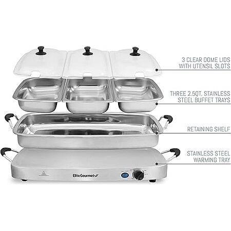 Woot! has Whitmor Elite Gourmet EWM-9933 Triple 3 x 2.5 Quart Trays Buffet Server 7.5 Qt Oven Safe Pan Food Warmer, Temperature Control, Clear Slotted Lids, Perfect for Parties, Entertaining & Holidays, Stainless Steel on sale for $37.99.