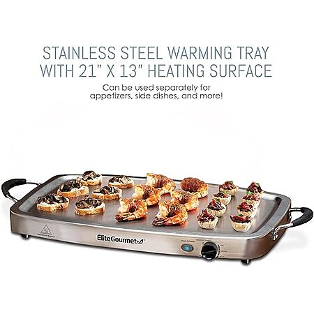 - STAINLESS STEEL WARMING BASE: Use the warming base as a stand-alone warmer with your own pans and dishes, or simply place small hors d'oeuvres directly on the base to keep warm.