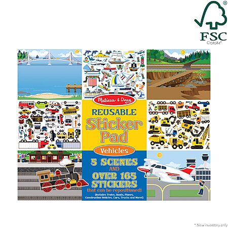 Amazon [amazon.com] has 165+-Count Melissa & Doug Reusable Sticker Pad: Vehicles for $5.40. Shipping is free w/ Prime or on $35+.