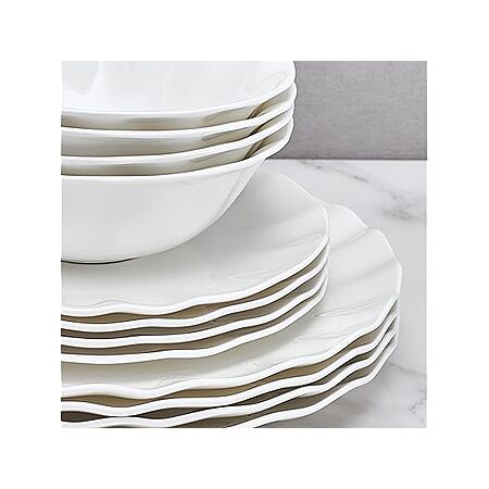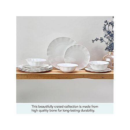 Woot! has Mikasa Elodie Scalloped 12 Piece Bone China Durable Chip Resistant Lightweight Dinnerware Set, Service for 4, White on sale for $46.99.