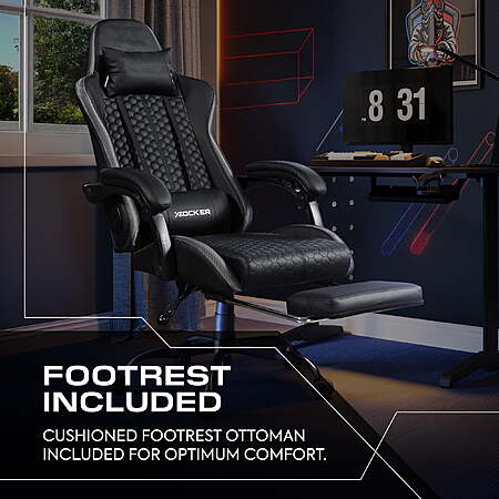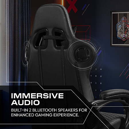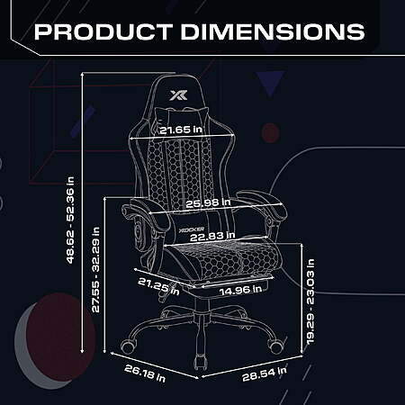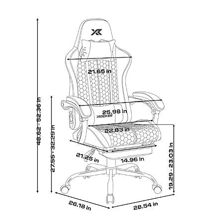 | Product Description: | Elevate every gaming and work session with the X Rocker Honeycomb Gaming Chair, designed for maximum comfort. Fully customizable and featuring an ergonomic design with a supportive lumbar pillow, adjustable footrest and head support rest to keep you comfortable through long hours of play or productivity. The honeycomb-patterned fabric is both stylish and functional, promoting breathability to keep you cool during extended hours of use. Whether you're gaming or working, the X Rocker Honeycomb Chair is built to deliver the perfect balance of comfort, style and performance. 2.0 BLUETOOTH AUDIO: Enjoy an enhanced gaming experience with the X Rocker Honeycomb’s built-in 2.0 Bluetooth audio system. Delivering high-quality sound without the hassle of wires, the Honeycomb allows you to fully immerse yourself in your favorite games, movies, or music. With rich audio clarity and powerful bass, you'll truly feel like you're in the center of the action, making every gaming session as unforgettable as the next. ERGONOMIC DESIGN: Designed by gamers, for gamers, enjoy unparalleled comfort and support with the thoughtfully designed ergonomics of the Honeycomb. Ensuring your back and neck stay aligned, you’ll be saying goodbye to fatigue and hello to sharper focus, longer play and next-level performance. HEIGHT ADJUSTABLE: Dial in the perfect height that suits you, giving you full personalized control over your comfort through the advanced gas-lift height mechanism. Match your gaming style, lock in the ideal posture, and stay battle-ready for every gaming session. PADDED ARMRESTS: Experience next-level support and comfort for your arms with luxuriously padded armrests. Game for hours without any discomfort, thanks to the plush padding that cushions your wrists and reduces strain. LEGREST INCLUDED: Sit back, relax and recline in comfort with the Honeycomb’s softly padded leg rest, enabling you to enjoy your gaming experience exactly how you want it. |