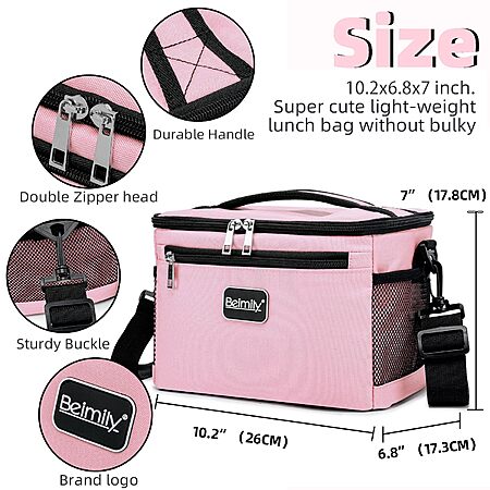 8L Beimily Small Insulated Lunch Bag w/ Adjustable Shoulder Strap (Pink) $6.99 + Free Shipping w/ Prime or on $35+