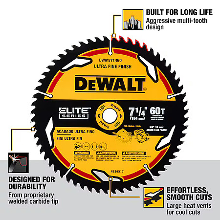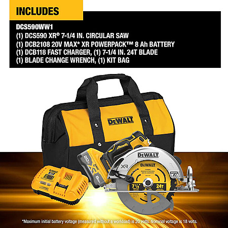 DEWALT XR 20V Max 7-1/4-in Cordless Circular Saw Kit with Battery, Charger, and ELITE SERIES 60T Fine Finish Blade $279.00