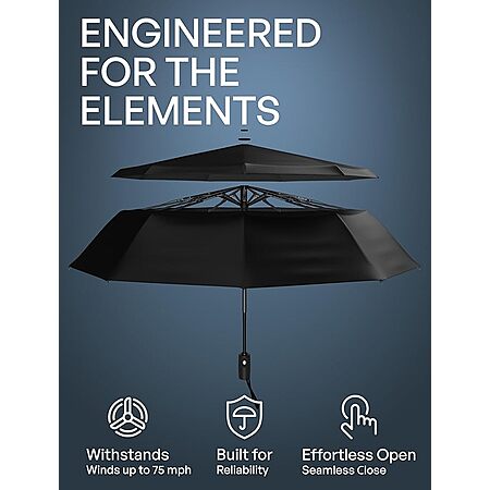 Upper Echelon Products via Amazon[amazon.com] has Repel Windproof Auto Open/Close Lightweight Compact Umbrella (Black) on sale from $15.29 w/ promo code RPLSD262 at checkout. Shipping is free w/ Prime or on Orders $35+