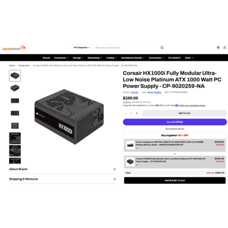 aaawave [aaawave.com] has Corsair HX1000i Fully Modular Ultra-Low Noise Platinum ATX 1000 Watt PC Power Supply Bundle with memory Corsair Vengeance RGB PRO 32GB Kit (2x16GB) DDR4 3200 CL16 UDIMM Desktop Memory Black bundle for $460.98. Shipping is Free