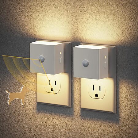 2-Pack JandCase LED Dimmable Wall Plug Night Lights w/ Motion Sensor (Various, 3000K) on sale for $15.99 -