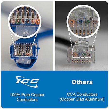 NATIONAL ELECTRICAL CODE (NEC) COMPLIANT: Built with 100% stranded pure bare copper conductors, meeting NEC Section 800.179, which mandates that "Conductors in communications cables, other than coaxial, shall be copper." Rated for 75°C and 300V, CAT6 patch cables ensure stable network communications while reducing fire hazards.