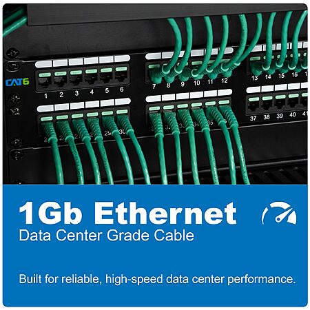 DATA CENTER GRADE PERFORMANCE: CAT6 patch cables are wired to T568B, factory tested to exceed TIA performance standards, and designed for high-speed data transfers up to 10/100/1000 Mbps with a Gigabit Ethernet bandwidth of up to 550 MHz, making them ideal for data center applications.