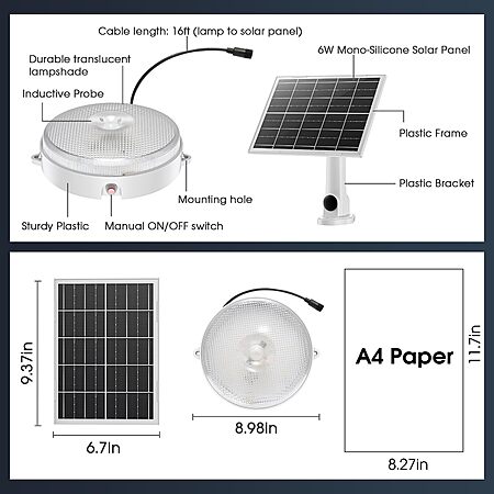 Model: Malitupy Solar Ceiling Light Motion Sensor, Brighter & Tricolor & Daytime Solar Shed Light with ON/Off Switch & Remote, Dimmable Waterproof Outdoor/Indoor Lights for Home Patio, Gazebo, Garden