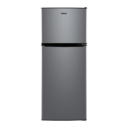 Galanz 4.6. Cu ft Two Door Mini Refrigerator with Freezer, Stainless Steel, New, Width 19.13" $188
