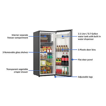 Galanz 6.5 Cu ft One Door Refrigerator, with Water Dispenser, Stainless Steel Look, Estar, New $198