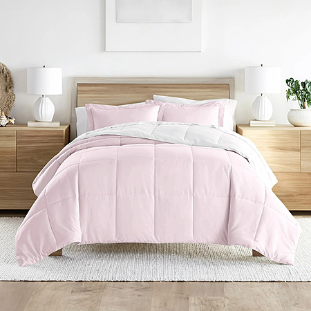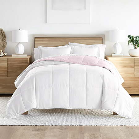 Noble Linens 3-Piece Blush & White Reversible Down Alternative Comforter Set, Full/Queen $18.98