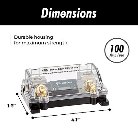 InstallGear 100 Amp In-Line ANL Fuse Holder - 0/2/4 Gauge AWG, Black, Glass, Copper, 24V DC, UL Listed $3.59 + Free Shipping w/ Prime or on $35+