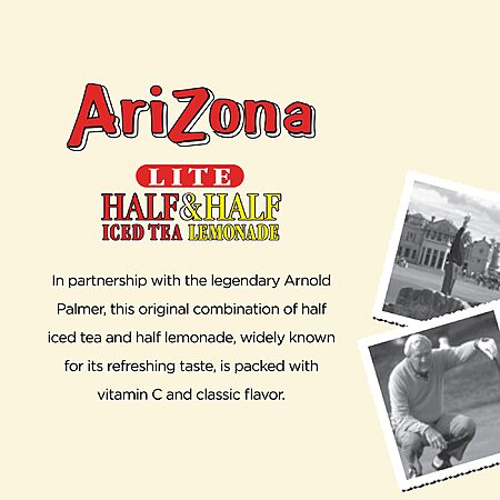 - Real Brewed: AriZona's Arnold Palmer Half and Half Lite combines traditional black tea and lemonade.