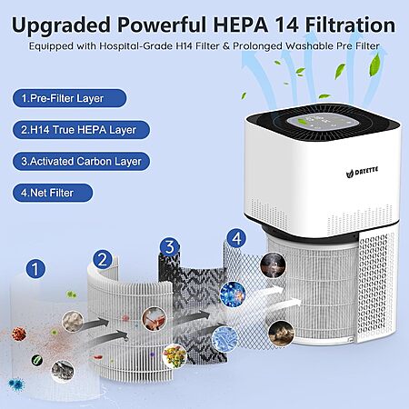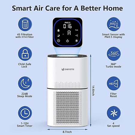 Model: HEPA 14 Air Purifiers for Home Large Room Up to 2200ft², DAYETTE Air Purifiers for Bedroom with Air Quality Sensor, Remove 99.97% of Dust, Odor, Pets Dander, Smoke