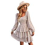 | Product Description: | Square Neck Smocked Dresses / Spring Dresses / Boho Style / Long Sleeves With Elastic Cuff / Stretchy Smocked Bust And Waist / High Waist / Ruffle Hem / Patterns: Floral Print Or Swiss Dot, Solid / Mini Short Dresses / Tips: Dot Model Has Pockets Cozy Fabric & Fit: women's Ruffle Short Dress Is Made Of Soft And Lightweight Material, Provides You A Comfortable Wearing Feeling In Spring, Early Summer, Fall. Size:S=US 4-6, M=US 8-10, L=US 12-14, XL=US 16-18, XXL=US 20 Chic Dress: The Wide Long Sleeves With Elastic Cuffs, And Has The Flared Skirt With A Layered Flounces Hem Are Also Impressive. HIGHLIGHTS: The Flowy Mini Dress Adopts Eye-Catching Floral Print Or Swiss Dot, Unique And Fashionable Design: The Length Above The Knee And High Waist Design Of This Dress Visually Elongates Your legs, Showing Your Tall Figure And Long Legs Flattering Silhouette: It Beautifully Outline Your Silhouette Thanks To The Stretchy Smocked Bust And Waist Design. Versatile & Stylish: You Will Catch Everyone's Attention In Every Occasions With This Long Sleeve Smocked Dress. You Can Create a Fresh Look With Sandals, High Heels, A Bag And Stylish Accessories For Party, Cocktail, Beach, Wedding, Homecoming, Vacation, Holiday. |