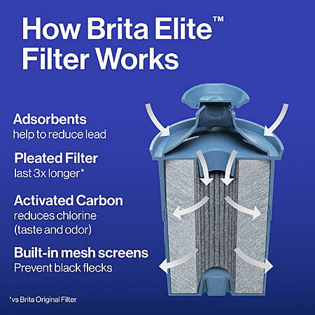 Get cleaner, great-tasting water for longer with Brita Long-Last Elite Pitcher Replacement Filters, which remove 99% of lead in your water.This long-lasting Brita Elite water filter is made with Advanced Carbon Core Technology to reduce more than 3x the contaminants of standard Brita filters.