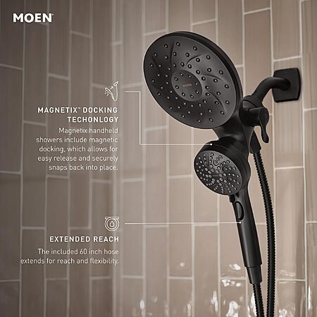 Moen Engage Matte Black 2.5 GPM Handheld Showerhead and Rain Shower 2-in-1 Combo Featuring Magnetic Docking System and Metal Hose, 26009BL $91.47