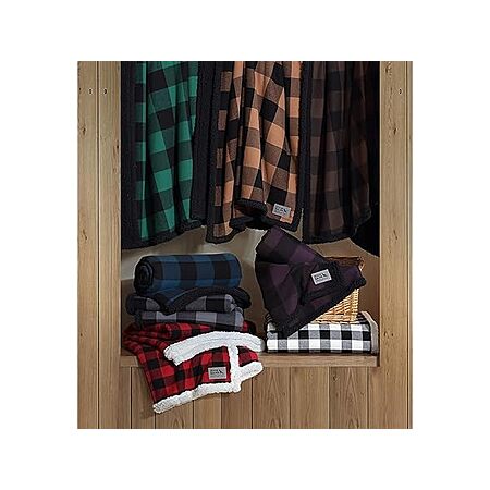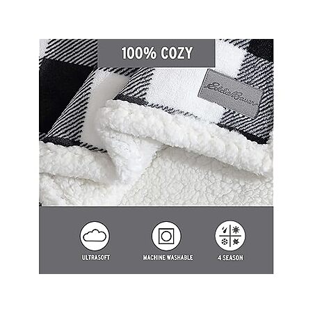 $6*:Eddie Bauer Reversible Sherpa & Brushed Fleece Throw Blanket, 50" x 60", Cabin Plaid Black at Woot!