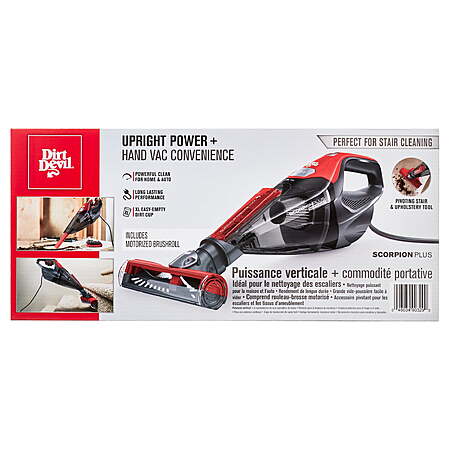 - Dirt Devil Scorpion Plus, Corded Handheld Vacuum Cleaner, Pet Friendly, for Multi-Surfaces, Powerful Suction, Built-in Crevice Tool, SD30025B, Red