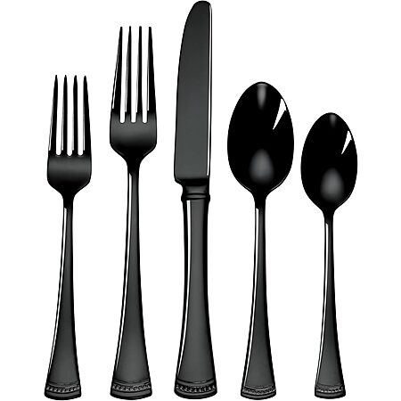The same classic Portola flatware that you know and love, now in a black color with a mirror finish. Complete with flared handles and a beaded channel at each base, this set includes forks, salad forks, knives, spoons and teaspoons that's perfect for serving four people.At Lenox, we strive to make the daily moments in your life a bit more special. Inspired by heritage and designed for now, we bring a rich history of craftsmanship to modern day life. We've been a part of homes for over 130 years. Each time you buy Lenox, you are buying a versatile and timeless piece crafted with our century-long commitment to quality, artistry and beauty. Whether you're gathering the family for dinner, grabbing a midnight snack for yourself in front of the TV or having friends over, Lenox is for real moments that last on products that are meant for living.