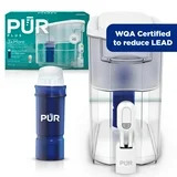 | Product Description: | For over 35 years, PUR has been at the forefront of water filtration, dedicated to providing everyone with cleaner, better-tasting drinking water. The expertly engineered water dispensers and pitchers transform your tap water at home by removing chemical and physical substances, including Lead. Notably, PUR was the first to assist Flint during their Lead water crisis, showcasing their commitment to clean water for all. With the PUR PLUS large water filter dispenser, enjoy great-tasting water every day. The 30-cup counter top and fridge water dispenser serves the whole household, with each filter lasting up to 40 gallons or 2 months of use. The filter indicator light ensures you know when it’s time for a replacement, while the LockFitTM design prevents mixing of unfiltered and filtered water. Why Choose A PUR Plus Lead Reducing Pitcher Filter? PUR's advanced 3-in-1 water filtration technology combines granulated activated carbon, ion exchange materials, and advanced pleated paper to reduce three times more chemical and physical substances* than Brita's leading pitcher filter**. Certified by WQA for Lead reduction and NSF for microplastic reduction*, PUR reformulated its Lead water filters after seeing real-world Lead scenarios in Flint and Newark. With an easy installation process, convenient pull-down spout for easy pouring, sturdy handle for effortless refilling & a slim design that fits in the fridge, this large water dispenser really is PUR bliss. Disclaimers * See Product Data Sheet for what this filter reduces. ** Versus best-selling Brita® pitcher filter OB03. Brita® is a trademark of Brita LP. *** Based on comparing a year’s worth of bottled water (16.9 oz) to a PUR system and 5 filters. ****Based on Nielsen sales data for lead reducing filters in the pitcher and faucet mount segments for 52 weeks ending 8/24/2024. Lead Reduction Water Filters – The PUR PLUS filtered water dispenser is WQA certified to reduce Lead & microplastics*. It's powerful 3-in-1 water filtration reduces over 20 chemical & physical substances, 3x more than Brita's leading pitcher filter** No. 1 selling brand that filters Lead water.**** - Choose a PUR Lead water filter dispenser for cleaner, great tasting water and save vs bottled water*** while also reducing plastic waste. A smart choice for your overall health, wallet and the planet too Large 30 Cup Capacity - Keep the household hydrated with ease. Built for everyday life, this large filtered water dispenser for fridge has a convenient pull-down spout for pouring, sturdy carry handle for convenient refilling, and a leak-proof design Transforming Your Tap Water - PUR Plus pitcher filters are certified to reduce chlorine, which tends to cause bad taste and odor. Enjoy great-tasting water every day, thanks to each Lead filter lasting up to 40 gallons or 2 months of use Ultimate Convenience - Slim yet sturdy and just like a PUR large water filter pitcher, it’s dishwasher friendly and fits in the refrigerator or on the countertop. The smart indicator light reminds you to replace the filter for optimal filtration |