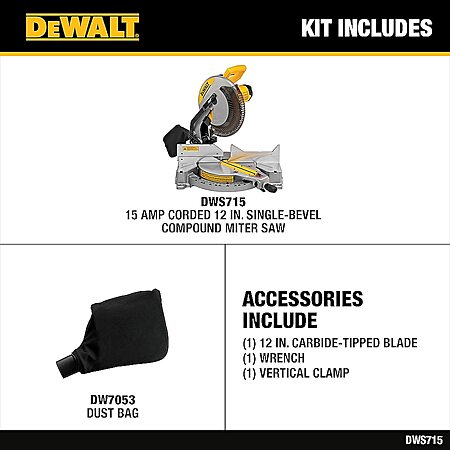DEWALT 12-in 15-Amp Single Bevel Compound Corded Miter Saw Stainless Steel one_size | DWS715 $219