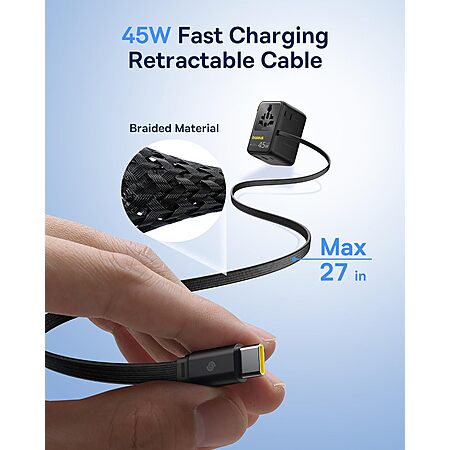 $25.99 | Baseus Enercore CG11 6-in-1 45W GaN Travel Adapter w/ Retractable Cable + 100W USB-C Cable at Amazon