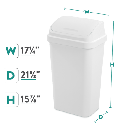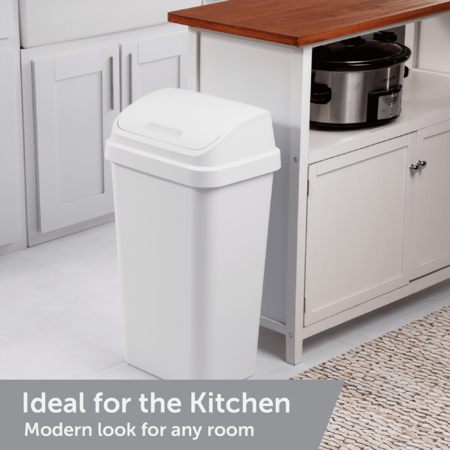 - Sterilite Kitchen Trash Can, 13 Gallon Plastic Garbage Bin with Swing Top Lid, White