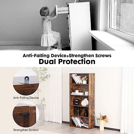 - ]- Keep your belongings safe with Gianna's top priority of safety – an anti-tip structure at the top of the bookcase. Connect the bookcase to your wall for enhanced stability and peace of mind.
