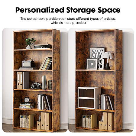 Walmart.com has Gianna 5-Tier Bookshelves with Adjustable Shelves, Floor Standing Bookcase for Home & Office Storage, Rustic Brown for $29.99.