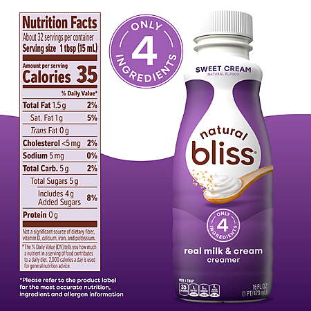 Natural Bliss Milk and Sweet Cream, Liquid Dairy Coffee Creamer, 16 fl oz