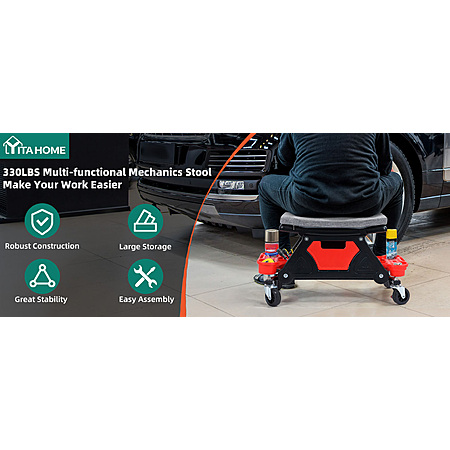 YITAHOME Mechanic Stool with Wheels and Storage (330lbs) $50.98 + Free shipping