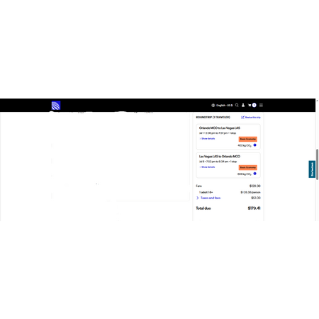 United Airlines have round trip airfares travelling to and from Orlando FL (MCO) and Las Vegas (LAS) for $180, making 1 stop both ways. These are basic economy fares that only allow a personal item. There is no seat selection and no carry-on bag.