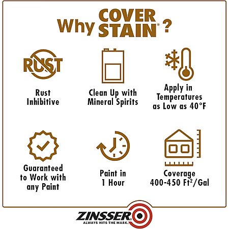 Rust-Oleum 3504 Zinsser Cover Stain Oil Based Primer, White, 6 1-Quart Cans $42.41 or 1 Quart $14.99