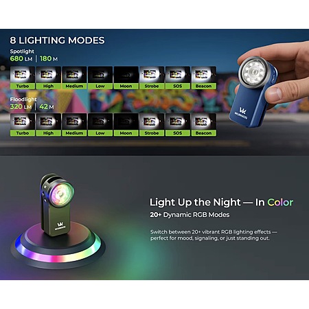 Wurkkos HD03 rechargeable flashlight clip light with spot / flood / RGB lights, free S&H, $12.76 after codes
