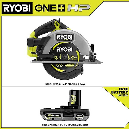 RYOBI ONE+ HP 18V Brushless Cordless 7-1/4" Circular Saw with FREE 2.0 Ah High Performance Battery $139 + Free Shipping