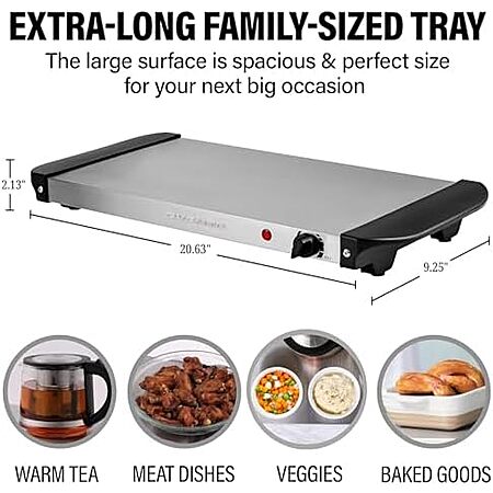 Amazon [amazon.com] has OVENTE Stainless Steel Electric Warming Tray w/ Temp Control (20.63" x 9.25") for $15.15.