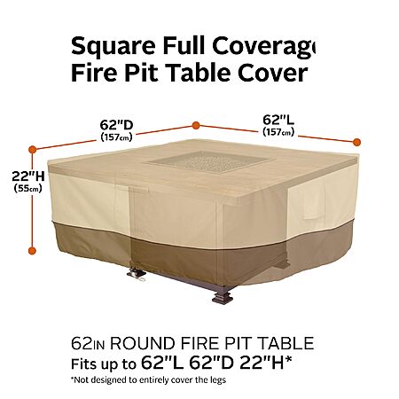 - HEAVY DUTY PATIO FURNITURE COVER: Fits 62" square fire pit tables 62"L x 62"W x 22"H