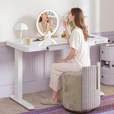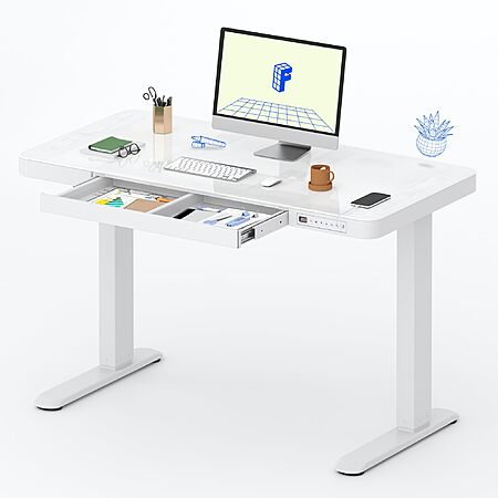 FLEXISPOT Comhar Electric Pure Glass Standing Desk with Drawer Desktop & USB Charge Ports, 48" Ergonomic Height Adjustable Sit to Stand Desk for Home Office (White, Glass) $279.98