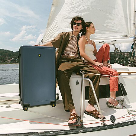 LEVEL8 Trunk Luggages, 28 Inch Luggage with Spinner Wheels, Luminous Textured Checked Large Hard Shell Lightweight with Tsa Lock, Navy $263.49