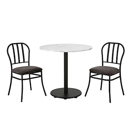 $37.50*:Mainstays 3-Piece Marble Table Top Indoor Dining Bistro Set, Black and Gray at Walmart.com