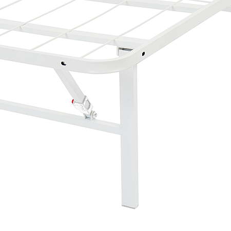| Product Description: | Make the most out of your mattress with the innovative and durable design of the Mainstays High Profile Foldable White Steel Platform Bed Frame. Constructed of powder-coated heavy-duty steel, the bed frame uses a unique, reliable mesh platform that allows you to place your mattress directly onto the frame without a box spring. This bed frame is quick and easy to assemble with no tools required, features a button locking system on legs that keeps the bed fully sturdy and easily folds in half for transport and storage. The Mainstays 14" foldable high profile bed frame creates a storage opportunity under your bed and stands on capped feet to minimize damage to floors. Available in Twin, Twin XL, Full, Queen, King, and California King, you and your family are sure to appreciate the durable, sturdy design of this Mainstays High Profile Foldable White Steel Platform Bed Frame. Mainstays 14” High Profile Foldable Platform Bed Frame, Queen, White Durable steel construction to stand up to wear and tear Featuring a classic powder-coated black steel finish Allows you to place your mattress directly onto the platform with no box spring required. Reliable support under innerspring, memory foam, and combination mattresses Features a button locking system that keeps the bed fully sturdy, allows the frame to fold away for easy storage and transport Designed with capped feet to ensure no damage occurs to your floor Fast and easy to assemble with no tools required for set-up Fits inside most standard bed frames Mattresses sold separately Ideal for use in a guest bedroom, child or teen bedroom, or in your master bedroom Assembled Product Dimensions: Queen: 80"L x 60"W x 14"H (1200 lb. weight capacity) Shipping Product Dimensions: Queen Shipping dimensions: 30.71" x 5.71" x 41.14" / Shipping weight: 46.16 lbs. |