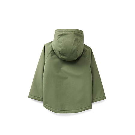 - Collar: Attached hood on outer jacket; mock neck on inner jacket